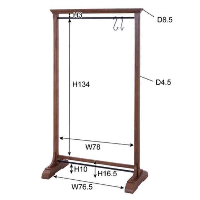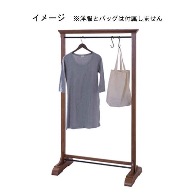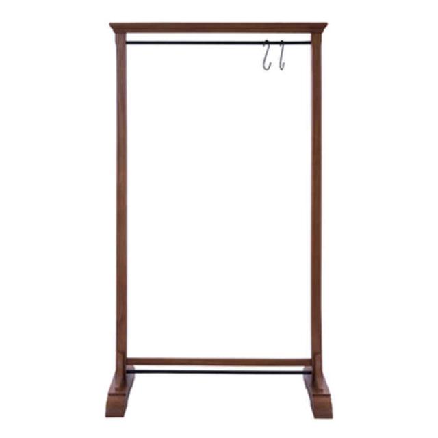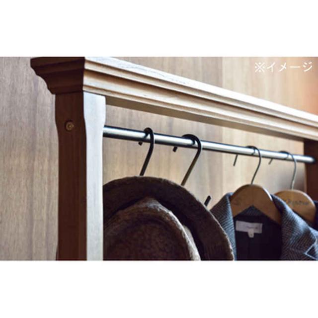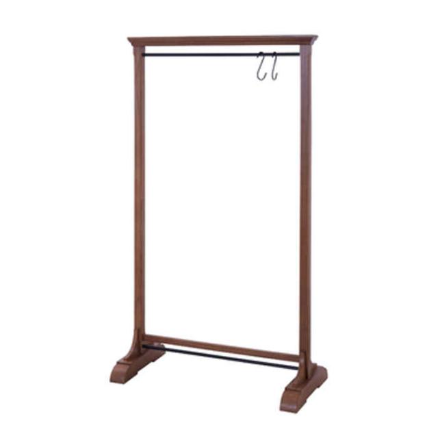 アンティーク風デザインの木製ハンガーラック。ハンガーを掛けるバーはアイアン製です。安定感のある脚のデザインで、重厚で趣ある雰囲気に仕上がっています。S字フックが2個付属します。