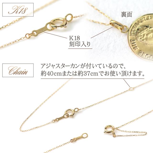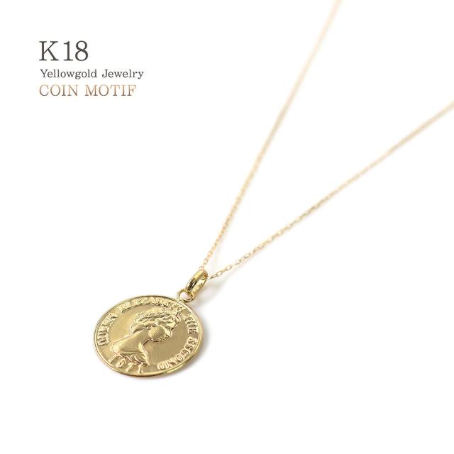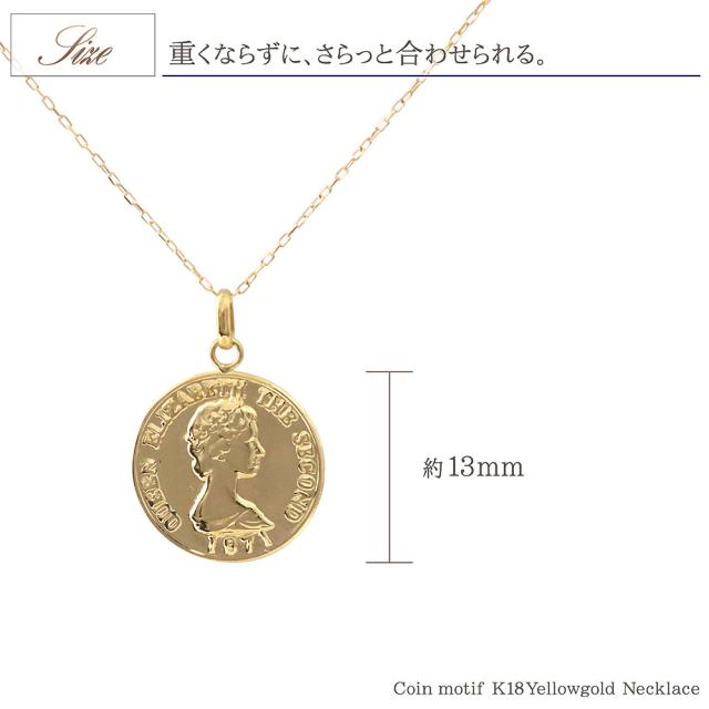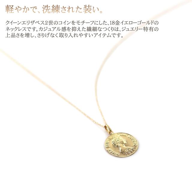 18金コインネックレス レディース コイン シンプル ネックレス K18 18K イエローゴールド 小ぶり スリム 薄型 誕生日 プレゼント かわいい 小さい 小さめ 硬貨 18金 ペンダント エリザベス女王 軽い 女性 妻 嫁 娘 ギフト 記念日 誕生日 可愛い コイン ホワイトデー お返し