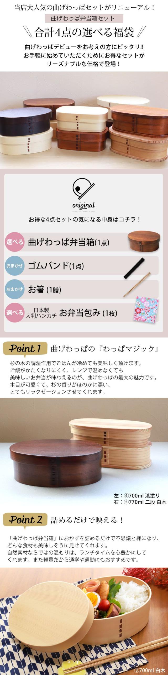 福袋 曲げわっぱ お弁当箱 選べる曲げわっぱ弁当箱 お試し デビューセット 4点セット アウトレット 曲げわっぱ弁当箱 大人 子ども 女性 男性 白木 漆塗り 1段 2段 送料無料 お箸 大判ハンカチ お弁当包み ゴムバンド 送料無料