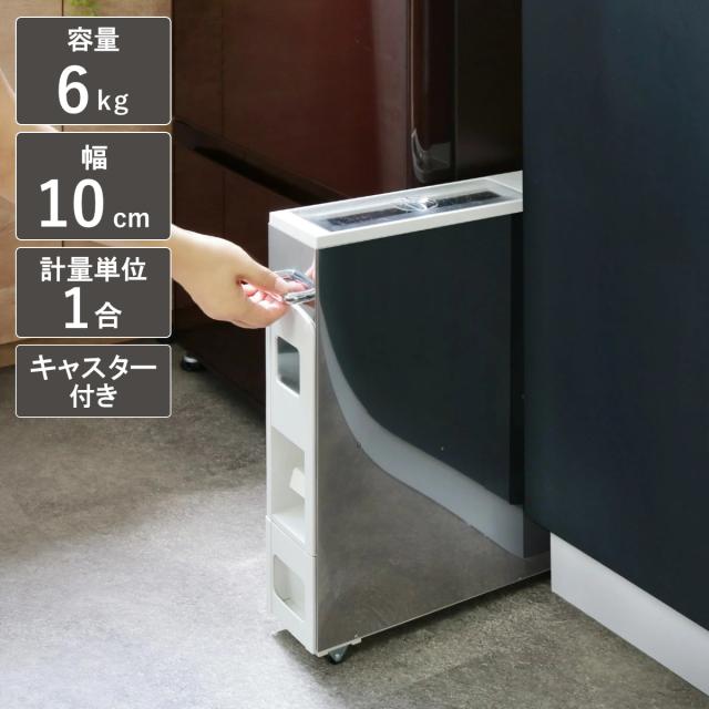 米びつ 5kg用 スリム ライスディスペンサー ステンレス 6kg ( キャスター付き 5kg 無洗米対応 一合計量 計量米びつ 幅10cm ライスボックス 計量 5キロ用 米びつ5キロ 米びつ 5kg 米びつ 計量)