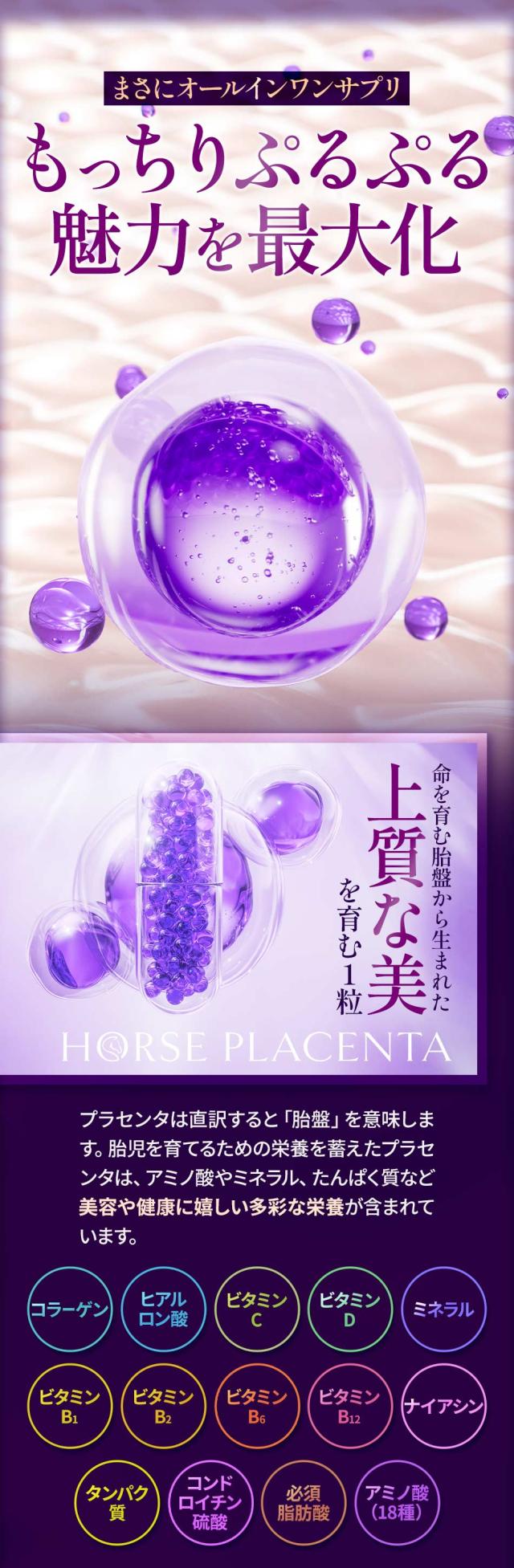 主要原料(1粒あたり):馬プラセンタエキス末 200mg