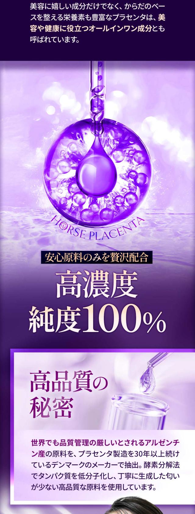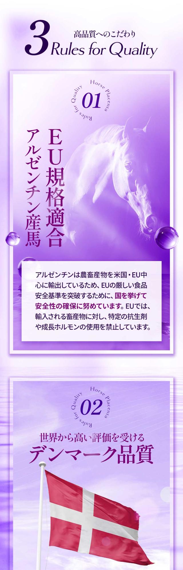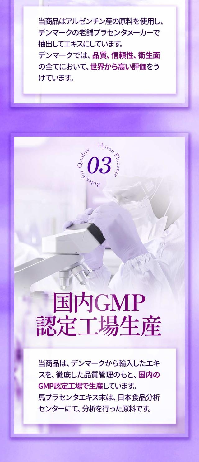 馬プラセンタエキス末(デンマーク製造) / HPMC、ステアリン酸カルシウム、微粒二酸化ケイ素、カラメル色素