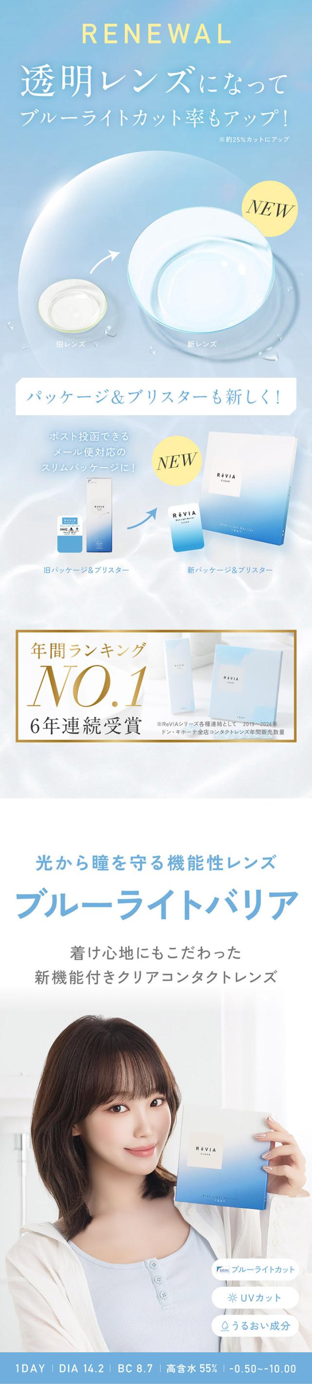 ブルーライトカット コンタクトレンズ レヴィア ReVIA ブルーライトバリア 1day UV モイスチャー 度あり 1箱30枚入り 1日使い捨て ワンデー コンタクトレンズ