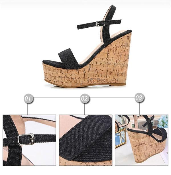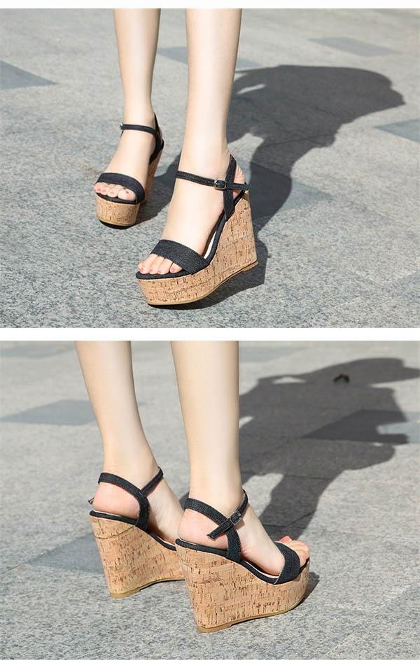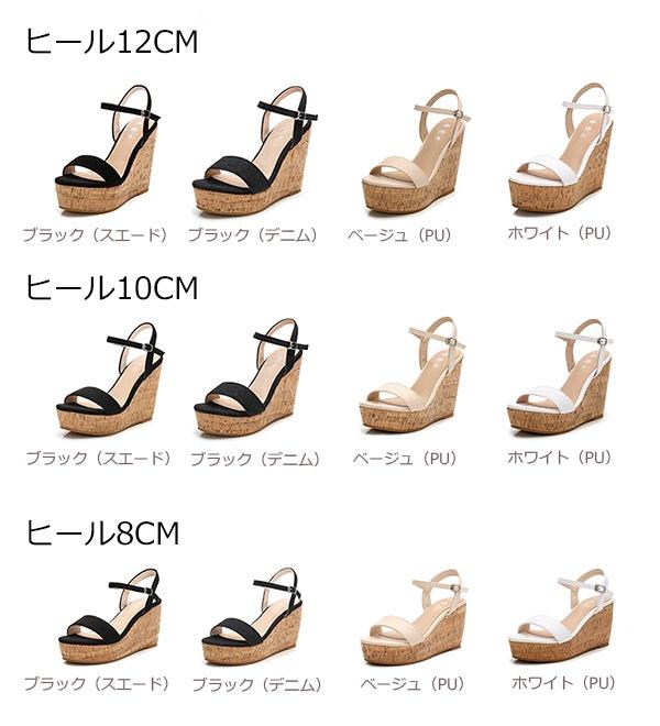 サンダル ウェッジソール 厚底 ヒール8/10/12cm 大人かわいい シューズ レディース 夏 ベージュ ブラック ホワイト オープントゥ スエード PU デニム 美脚 靴 女性 大きいサイズ 小さいサイズ ウェッジヒール ストラップ おしゃれ di172n1n1n1