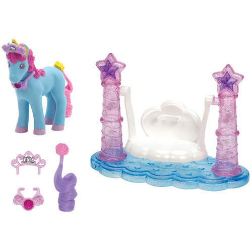 ゆめみるお姫さまシリーズの、クリアカラーの可愛いブランコとメルヘンユニコーンのセットです。