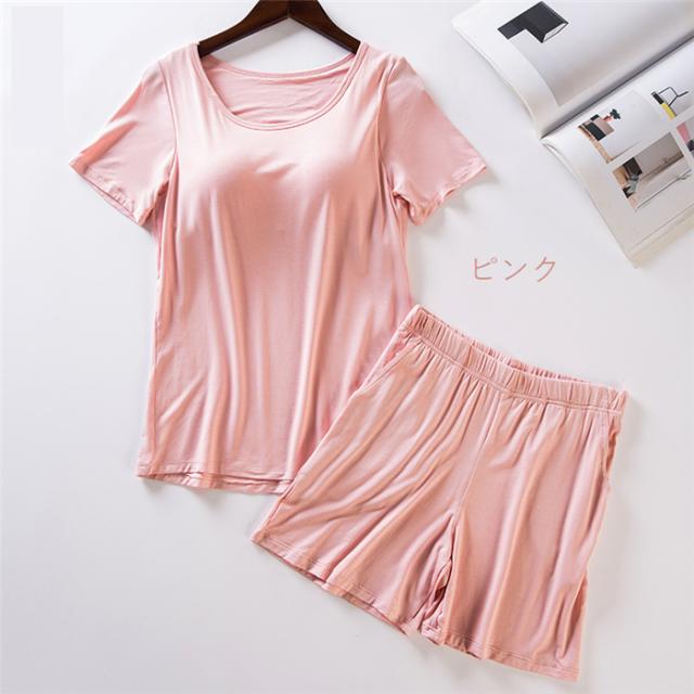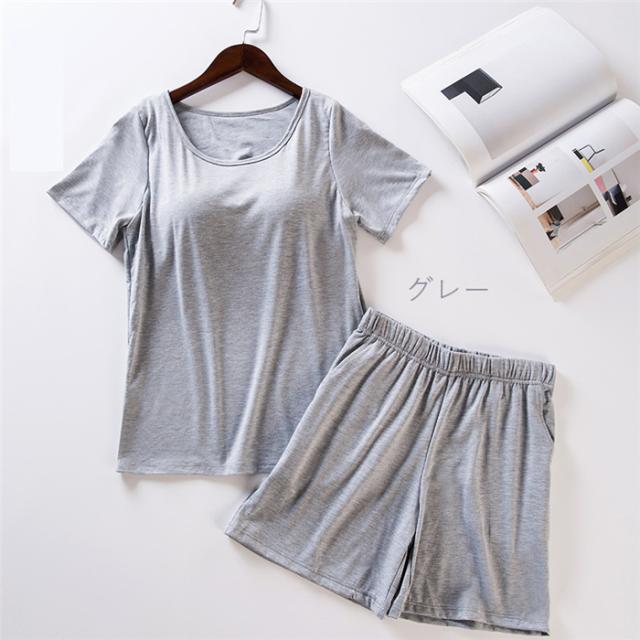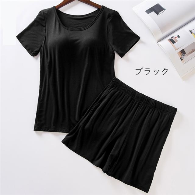 カップ付き ブラトップインナー レディース 半袖 2点セット カジュアル Tシャツブラ ルームウェア ブラ カットソー 定番 ベーシック 夏 無地 丸首 速乾 スポーツ Tシャツ