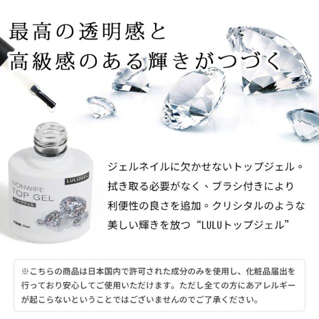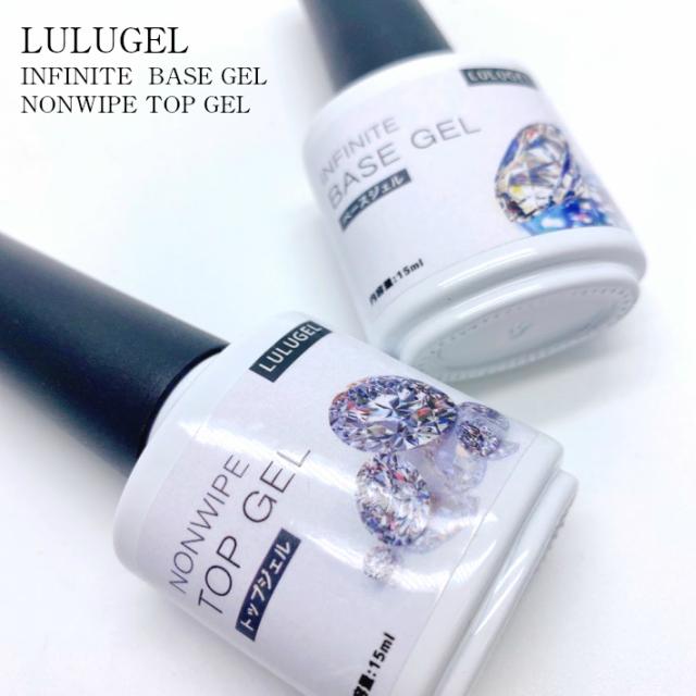 【2点 セット】ジェルネイル セット ノンワイプ トップコート ベースジェル 各15ml ポリッシュタイプ ルルジェル LULUGEL