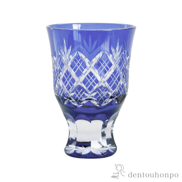 「送料無料」 江戸切子 重ね矢来・菊底 酒杯 瑠璃 江戸切子 ( 田島硝子 退職祝い 定年 ぐいのみ 盃 酒器 セット 日本酒 江戸切子 結婚 )