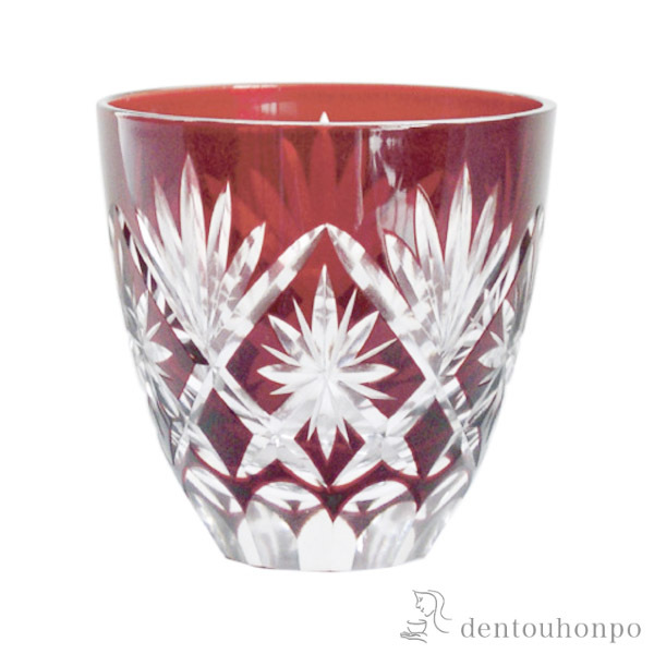 切子とは、砥石等の研磨材を用いて硝子器に彫り込まれたカット模様のことです。この技法は、江戸時代の後期より現代に伝えられてきた伝統工芸のひとつです。この硝子器は、江戸硝子吹き技法の色被せ硝子に、切子師の技が光り輝く手造りならではの工芸品です。