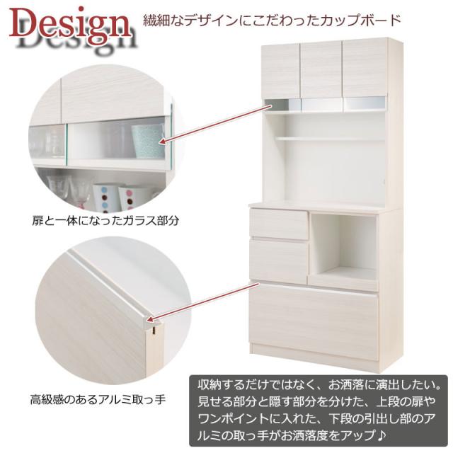SUGAR シュガー 国産キッチンボード 幅89.5cm 開梱設置サービス付き (キッチンボード 食器棚 キッチン収納 レンジボード レンジ台 大容量 シンプル モダン ホワイト ナチュラル 完成品 国産 日本製)
