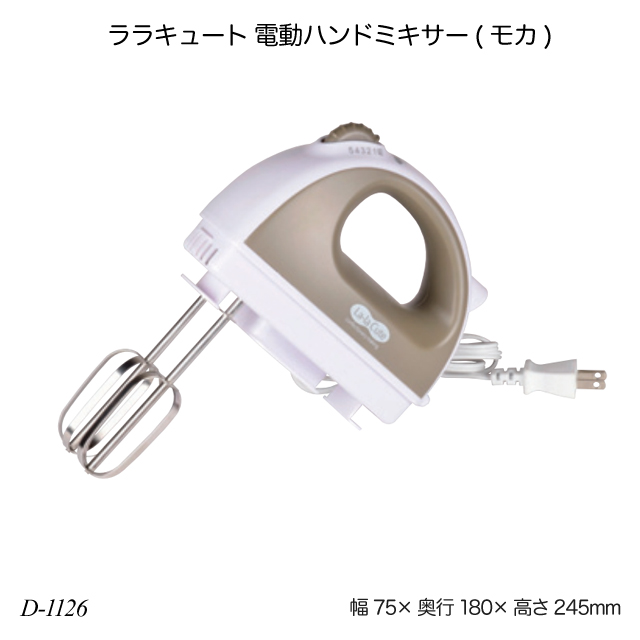 ララキュート 電動ハンドミキサー(モカ) D-1126 ハンディーミキサー ブレンダー ハンディミキサー 泡立て器