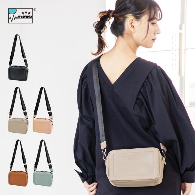アヴェンチュラ スクエアショルダーバッグ ミニバッグ 斜めがけ 撥水 合皮 軽量 小さめ マチ 多収納 ショルダーポーチ ロゴ 黒 レディース 大人 女性 大学生 女子 高校生 アウトドア サブバッグ フェス ポシェット 通勤 通学 かわいい お祝い 人気 ブランド