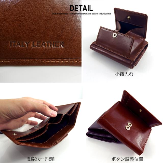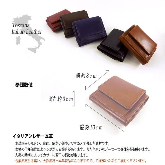 ミニ財布 小さい財布 三つ折りミニウォレット イタリアンレザー レディース メンズ 極小財布 コンパクト 本革 小銭入れあり