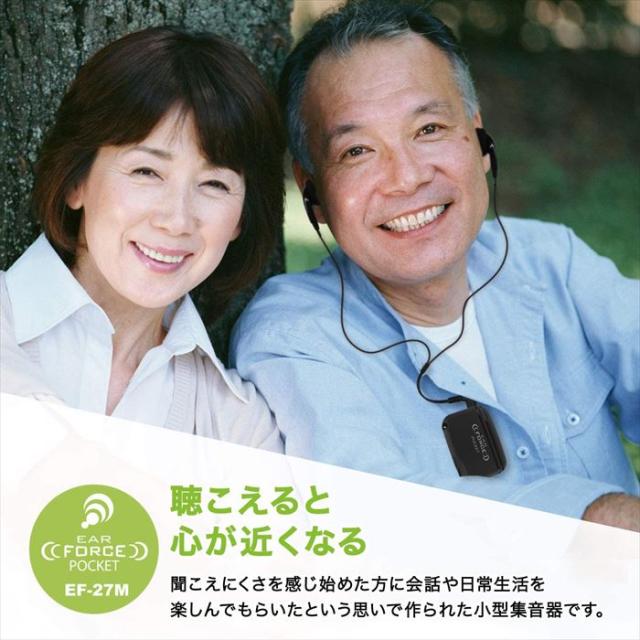 即納 集音器 イヤーフォースポケット 左右両用 イヤホンタイプ ポケット型 高性能 携帯用ケース付属 ブラック エムケー精工 EF-27M