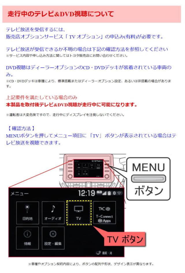 ■運転者による運転中のテレビ視聴とナビ操作は危険ですので絶対に行わないでください。