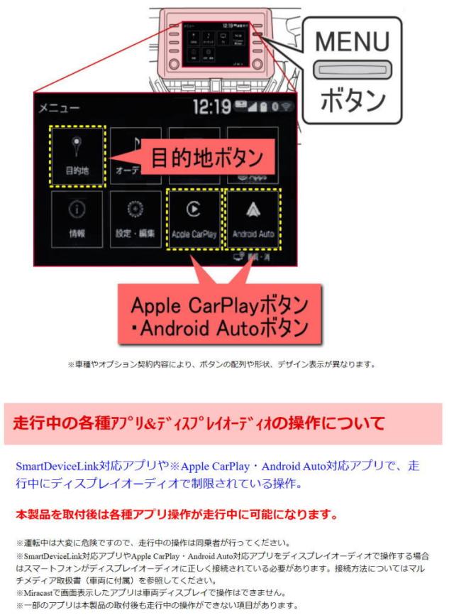 下記車種の標準装備ディスプレイオーディオに適合します。