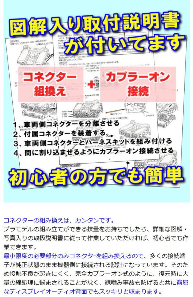 ■本製品はコネクター組換え+カプラーオン接続で、車両側ハーネスを切断したりしないので、安心して取付けが可能です。車両売却時は、本製品を取り外すことで完全ノーマル状態に戻すことが可能です。