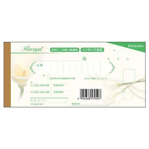 ストア内の商品は全品送料無料です。カラーの花をデザインした、華やかでエレガントな領収証です。フラワーショップや、ジュエリーショップ、レストランなどエレガントなお店にお奨めです。使い勝手のよい小切手サイズ。クリアカットミシンできれいに切り離せます。折り込み下敷き付き。2枚複写ノーカーボン紙使用。【サイズ】本体=185×85mm、ミシン目切り離し後=小切手サイズ (170×85mm)【仕様】2枚複写【内容】1.Receipt、2.Receipt (厚紙)【入数】40組■メーカー: ヒサゴ
