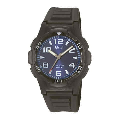 ストア内の商品は全品送料無料です。Q&Qは、Quality(品質の良いものを)&Quantity(より多くの人へ)のもと、環境にやさしいソーラー電源時計や時刻合わせ不要の電波時計を中心とした、幅広い商品を揃えています。インデックスや針の太さやベゼルなどダイバーズテイストを取り入れたデザインの腕時計。10気圧もの防水性を誇り、普段使いには十分なモデルです。ベルトには、水や汗などに強く耐久性の高いポリウレタンを採用しています。...■メーカー: CITIZEN シチズン Q&Q
