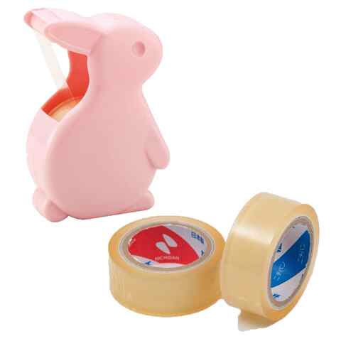 ストア内の商品は全品送料無料です。ペットとしても人気のうさぎをモチーフにした手のひらサイズのセロテープ小巻用テープカッターです。全体的に丸みをもたせ、見た目にもかわいらしく、子どもでも持ちやすく使いやすい形状です。縦置きで自立するので、デスクに置けば、ちょこんとした愛らしい姿に癒されます。カッターはプラスチック製で、刃の両サイドにガードを付け、直接指で触れにくく、安全性に配慮した設計になっています。本体サイズ:W:49.5mm×L:32.6mm×H:79mmセットにスペアのテープが含まれています。幅×長:15mm×9m 入数:2巻厚:0.053mm■メーカー: ニチバン