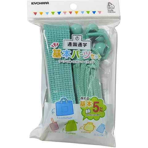 手芸 手作り 入園入学用品 基本パーツ 5点セット ミント (カラーテープ/カラーひも/Dカン/ループエンド) 作り方レシピ付 送料無料