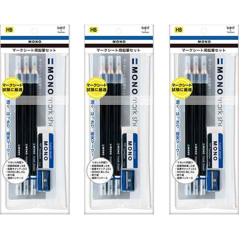 トンボ鉛筆 MONO マークシート用 鉛筆 ペンポーチ入りセット 3個 HB キャップ 消しゴム ミニ削り器 勉強 受験 送料無料