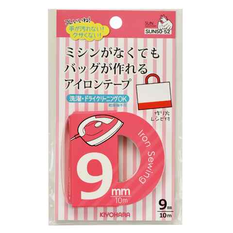 ストア内の商品は全品送料無料です。ミシンがなくてもバッグやポーチが作れるアイロンテープ。テープ状なので手が汚れずに染み出しにくく、ニオイもありません。約4kgの重さに耐えられる強力接着なので、重い荷物も大丈夫。洗濯、ドライクリーニングOK。9mm幅はバッグ作りに。レッスンバッグが作れる簡単レシピ付き。※使用上の注意持ち手の接着に、アイロンテープ2.5cmを2枚貼り付けた場合、約4kgの重さに耐えられます。それ以上重いものを入れる場合は持ち手を縫いとめて補強してください。めくれ強度が弱いため、ポケットなどは縫いとめて補強してください。乾燥機のご使用は避けてください。剥がれる恐れがございます。【商品名】アイロンテープ 9mm巾【商品本体サイズ】約9mm幅×約10m巻【生産国/原産国】日本【素材/成分】ポリエチレン系樹脂【アイロン接着温度】140~200度■メーカー: 清原