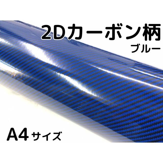 2Dカーボンシート A4サイズ ブルー 光沢艶ありカーラッピングシートフィルム 青 耐熱耐水曲面対応裏溝付 サンプル