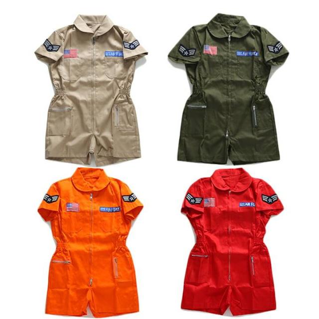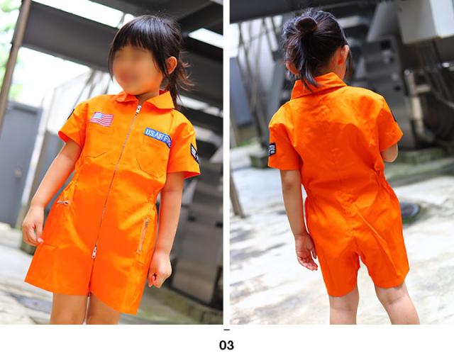 アメリカ空軍 USエアフォース つなぎ オーバーオール カバーオール 作業着 ミリタリースーツ パイロット フライトスーツ 半袖 キッズ カーキ オリーブ オレンジ 赤 星条旗 ワッペン付 アーミー RH-MS-KD-006