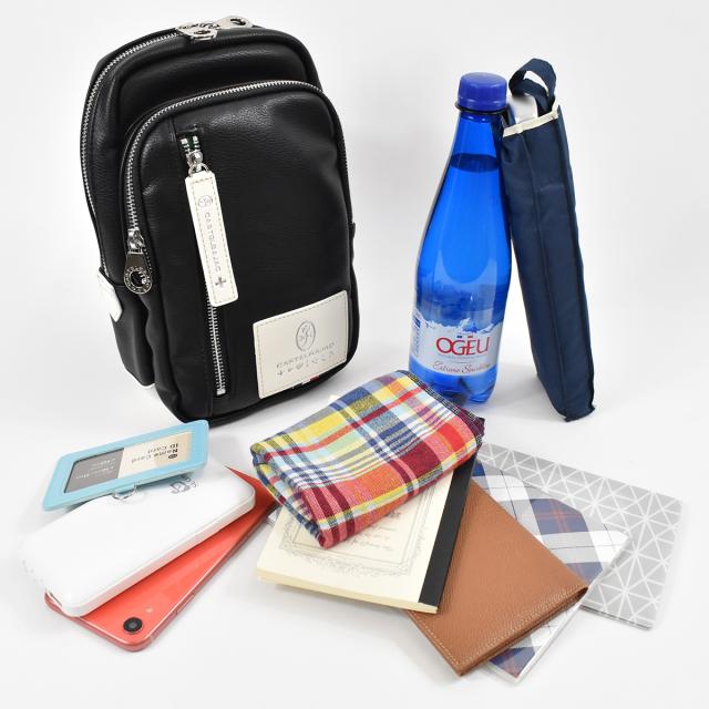 コンパクトなサイズ感ながら、500mlペットボトルが収納できるようマチ幅を広めにとっており、見た目以上の収納力があります。他にも財布・スマホ・手帳などをスムーズに入れることができ、ちょっとした外出に便利なアイテムです。