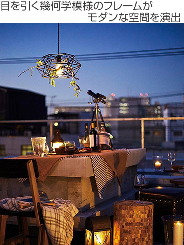 幾何学模様のシェードが雰囲気のあるお部屋を作ります。フレームの隙間から漏れる優しい光が、お部屋を包み込みモダンな空間を演出します。様々なテイストの家具とも相性抜群です。