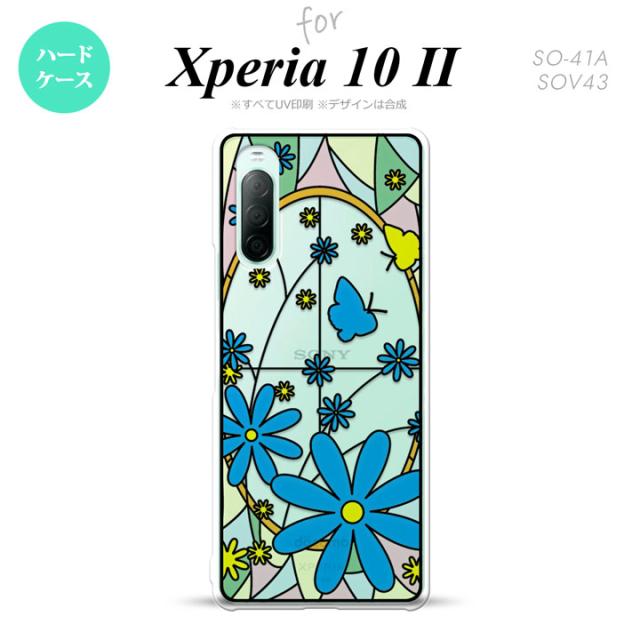 Xperia10 II 対応 スマホケース 背面カバー ステンドグラス風 きれい ガーベラ ブルー ステンドグラス風