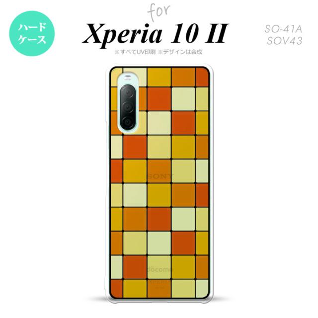 Xperia10 II 対応 スマホケース 背面カバー ステンドグラス風 きれい スクエア オレンジ ステンドグラス風