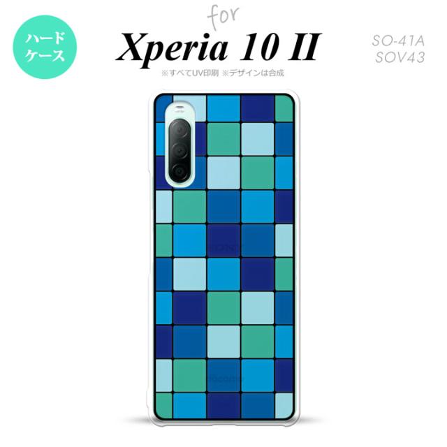 Xperia10 II 対応 スマホケース 背面カバー ステンドグラス風 きれい スクエア ブルー ステンドグラス風