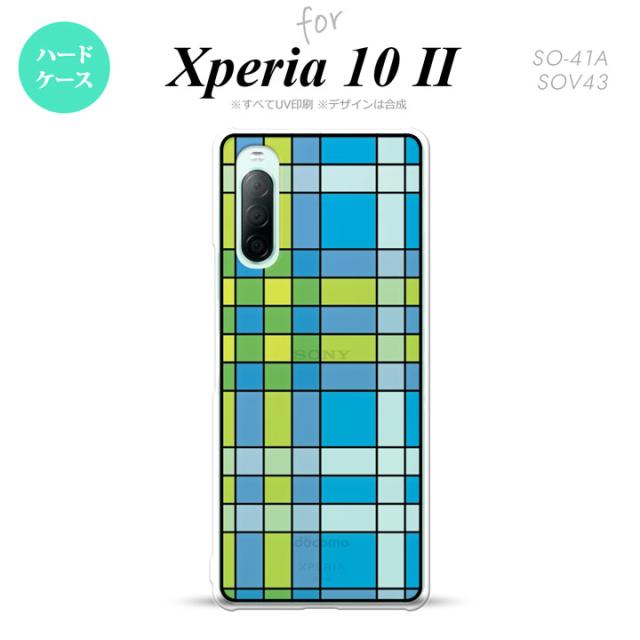 Xperia10 II 対応 スマホケース 背面カバー ステンドグラス風 きれい チェック ブルー ステンドグラス風