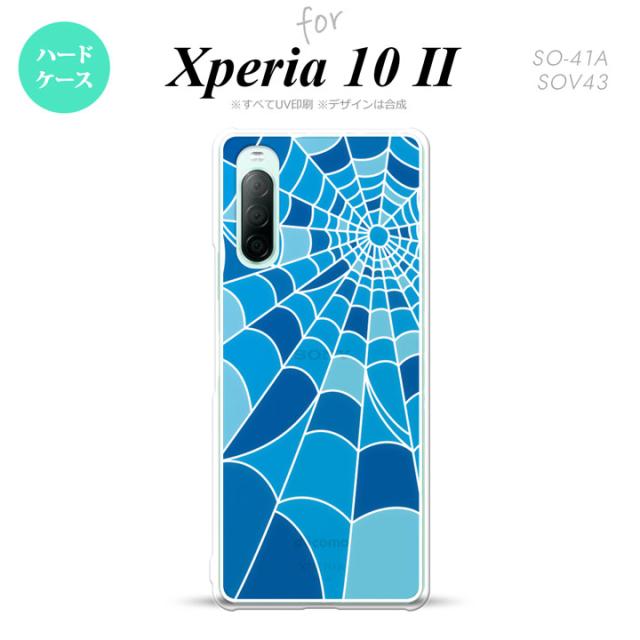 Xperia10 II 対応 スマホケース 背面カバー ステンドグラス風 きれい 蜘蛛の巣 B ブルー ステンドグラス風