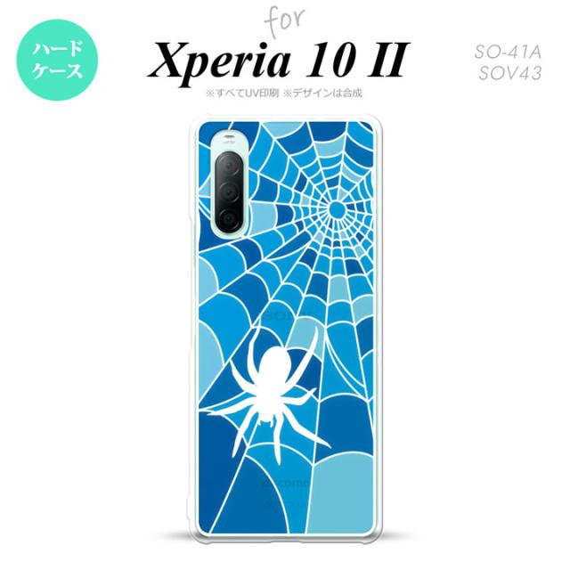 Xperia10 II 対応 スマホケース 背面カバー ステンドグラス風 きれい 蜘蛛の巣 B ブルー ステンドグラス風