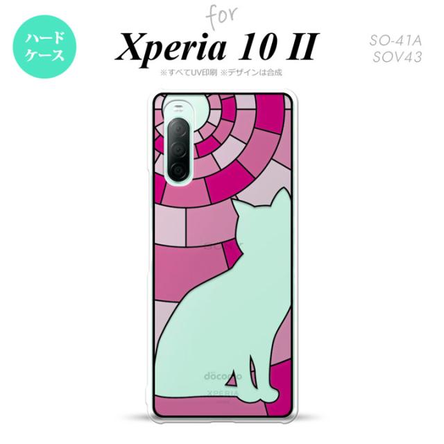 Xperia10 II 対応 スマホケース 背面カバー ステンドグラス風 きれい 猫 ピンク ステンドグラス風