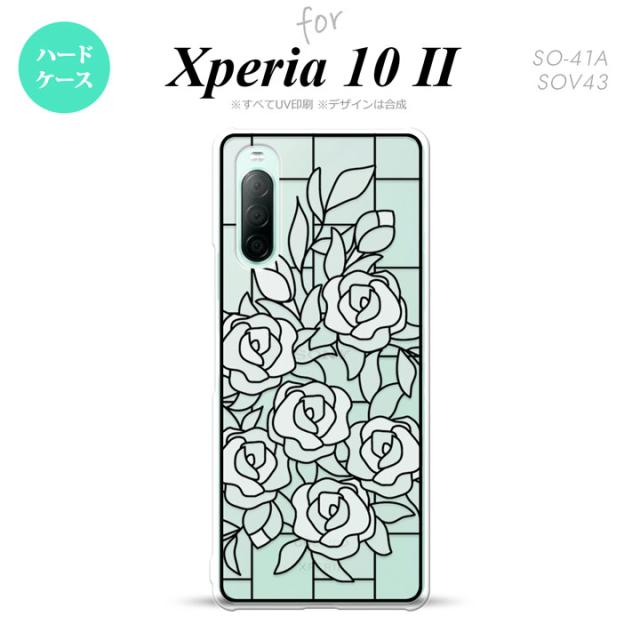 Xperia10 II 対応 スマホケース 背面カバー ステンドグラス風 きれい バラ ホワイト ステンドグラス風