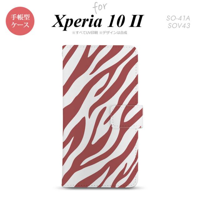 Xperia10 II 手帳型 スマホケース 全面印刷 おしゃれ ストラップホール有り ゼブラ 赤
