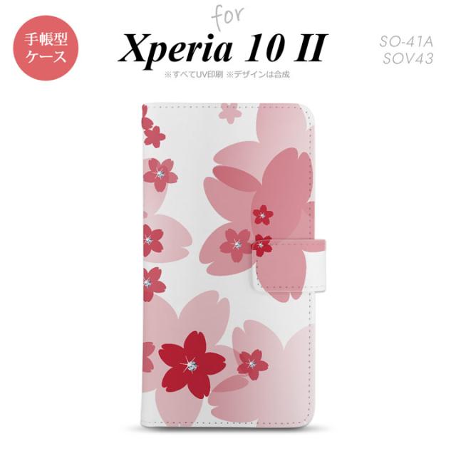 Xperia10 II 手帳型 スマホケース 全面印刷 おしゃれ ストラップホール有り 花柄 サクラ 赤