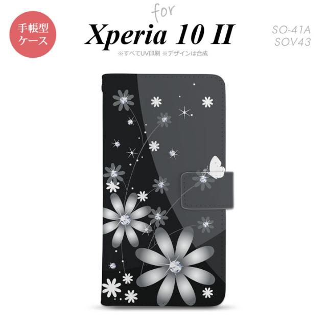 Xperia10 II 手帳型 スマホケース 全面印刷 おしゃれ ストラップホール有り 花柄 ガーベラ 黒