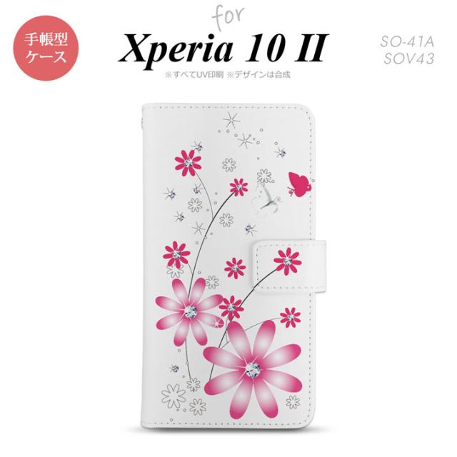 Xperia10 II 手帳型 スマホケース 全面印刷 おしゃれ ストラップホール有り 花柄 ガーベラ 透明 ピンク