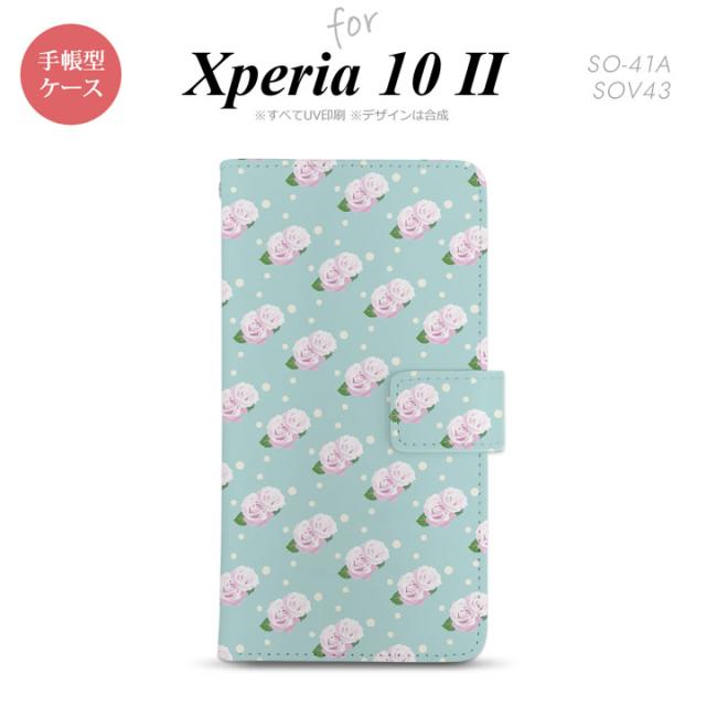 Xperia10 II 手帳型 スマホケース 全面印刷 おしゃれ ストラップホール有り 花柄 バラ ドット 水色