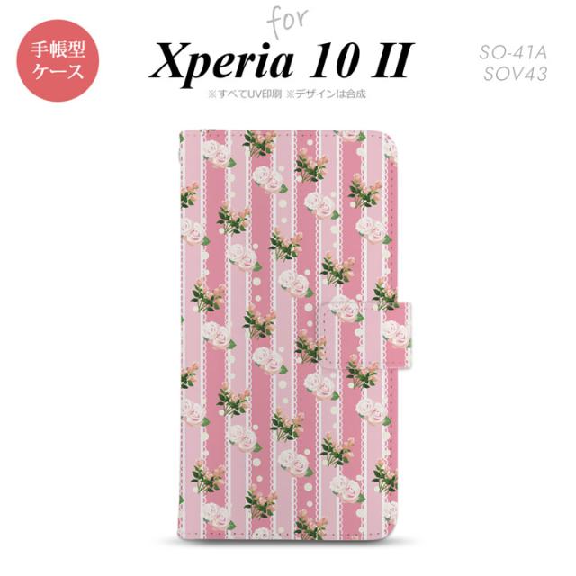Xperia10 II 手帳型 スマホケース 全面印刷 おしゃれ ストラップホール有り 花柄 バラ レース ピンク
