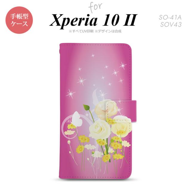 Xperia10 II 手帳型 スマホケース 全面印刷 おしゃれ ストラップホール有り 花柄 ミックス ピンク
