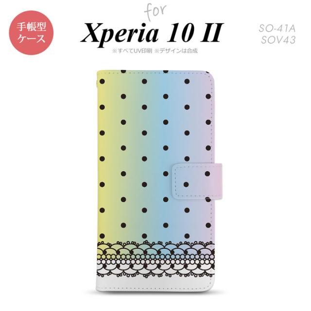 Xperia10 II 手帳型 スマホケース 全面印刷 おしゃれ ストラップホール有り ドット レース パステル