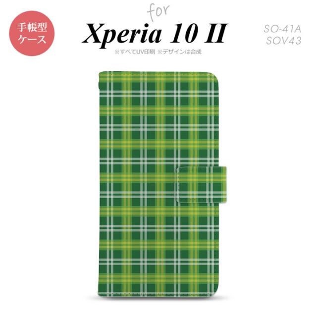 Xperia10 II 手帳型 スマホケース 全面印刷 おしゃれ ストラップホール有り チェック 緑