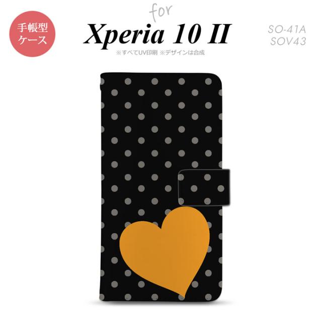 Xperia10 II 手帳型 スマホケース 全面印刷 おしゃれ ストラップホール有り トランプ 水玉 ハート 黒 オレンジ