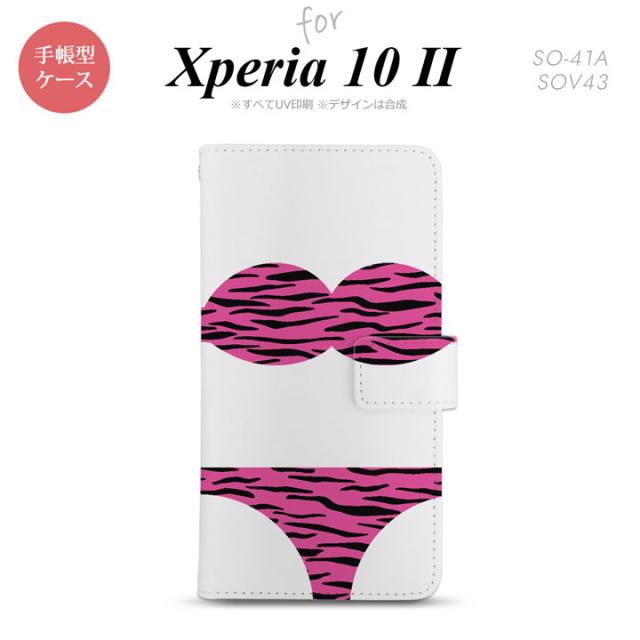 Xperia10 II 手帳型 スマホケース 全面印刷 おしゃれ ストラップホール有り 虎柄 ビキニ ピンク